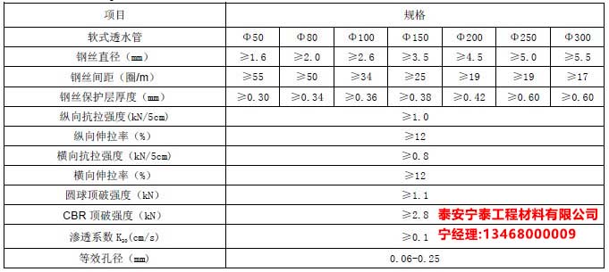 橡膠筋使管壁被覆層與彈簧鋼圈管體成為有機(jī)一體,具有很好的透水功能,滲透水順利滲入管內(nèi),而泥砂雜質(zhì)被阻擋在管外,從而達(dá)到透水、過濾、排水一氣呵成之目的。